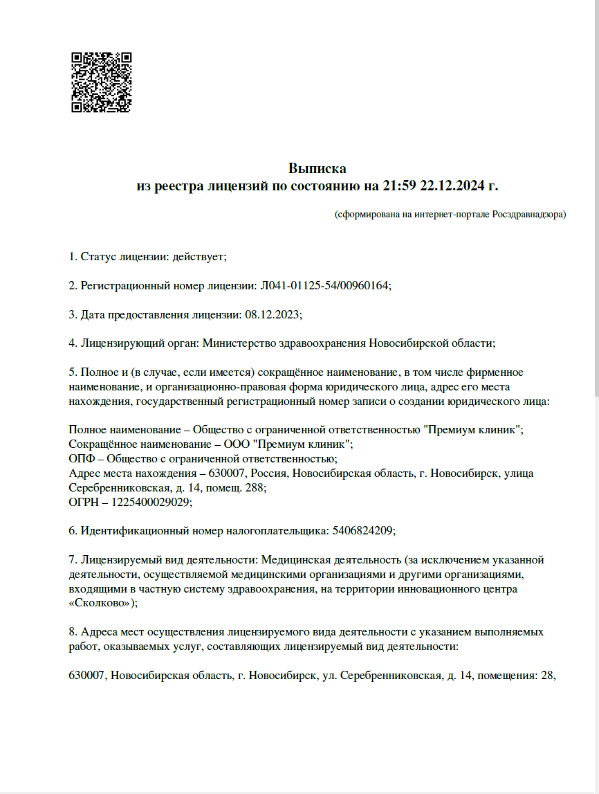 от лицензированной клиники